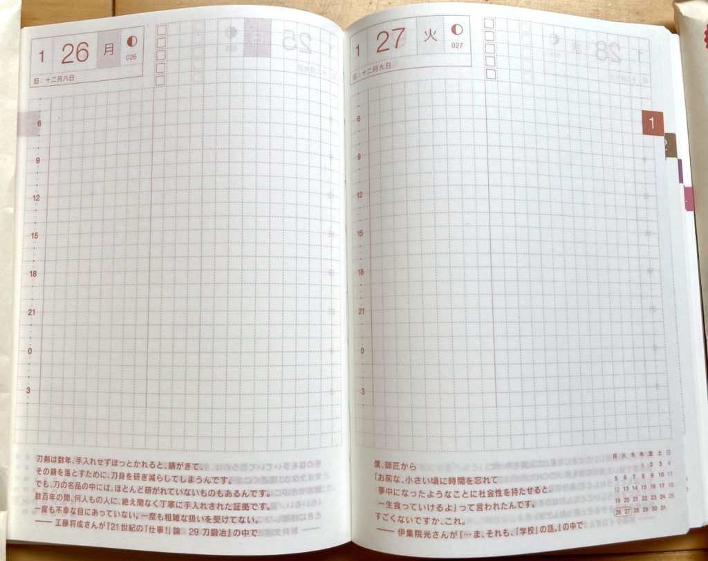 以前に取材していただきましたインタビュー記事、21世紀の「仕事!」論「29 刀鍛冶」から抜粋した文言を手帳に掲載してくれました。